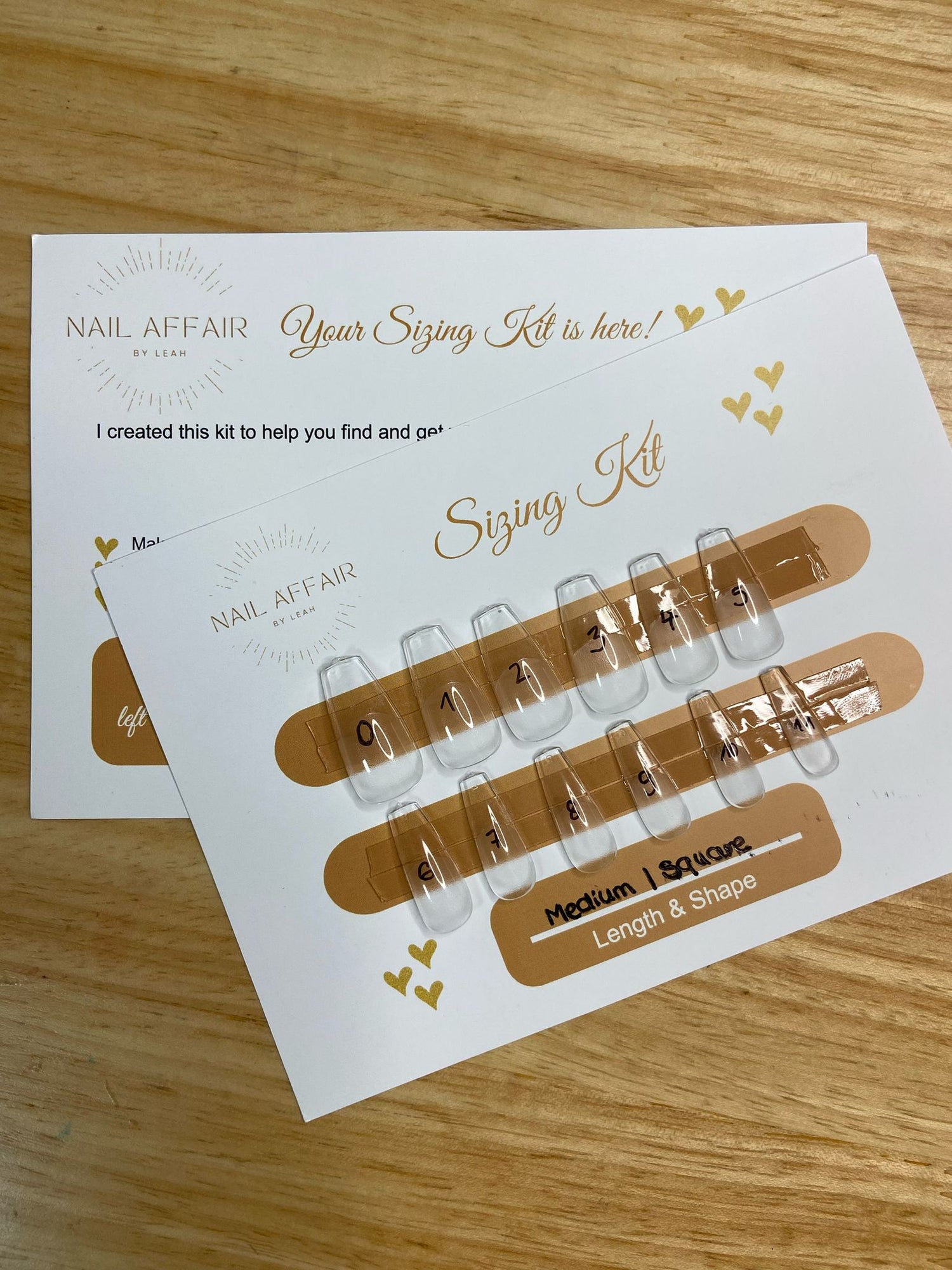 A sizing kit includes every nail size (including 0-11) in the shape of your choice (e.g. short almond) for you to try and determine your prefect fit.