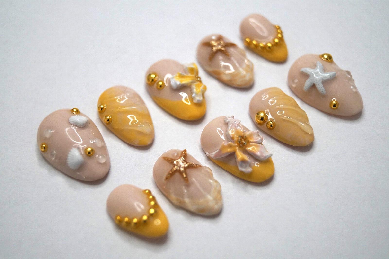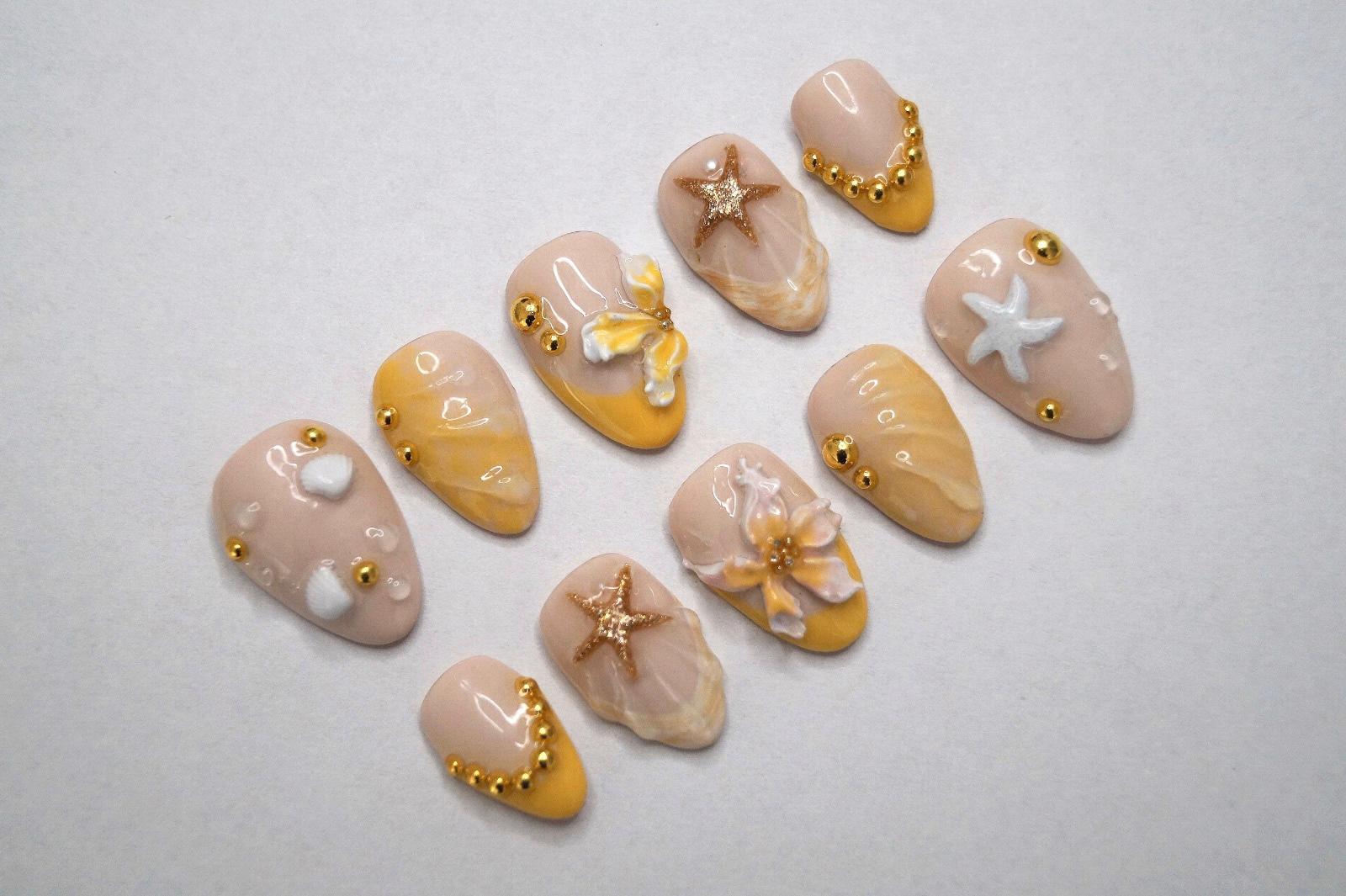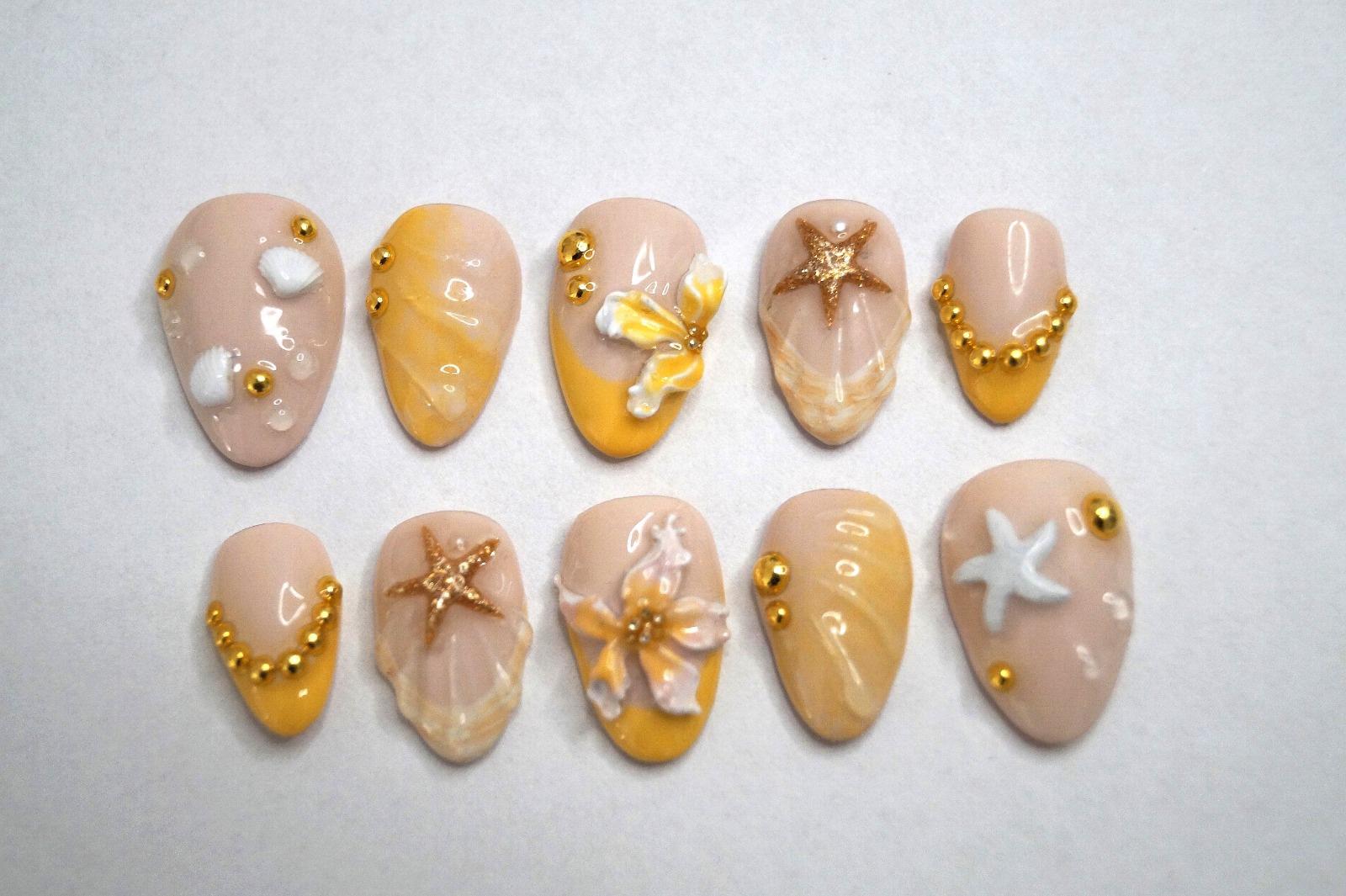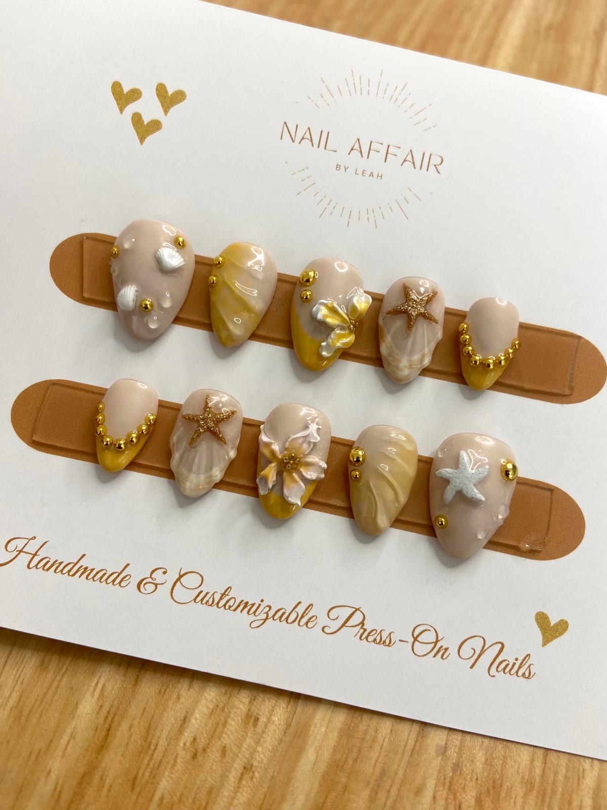 Dive into coastal elegance with Island Girl Press-On Nails by Nail_Affair_byLeah. These nails capture the summery scence of the ocean with beachy coastel elements and 3D flowers and shells. Elevate your next vacation with these cute and fun nails.