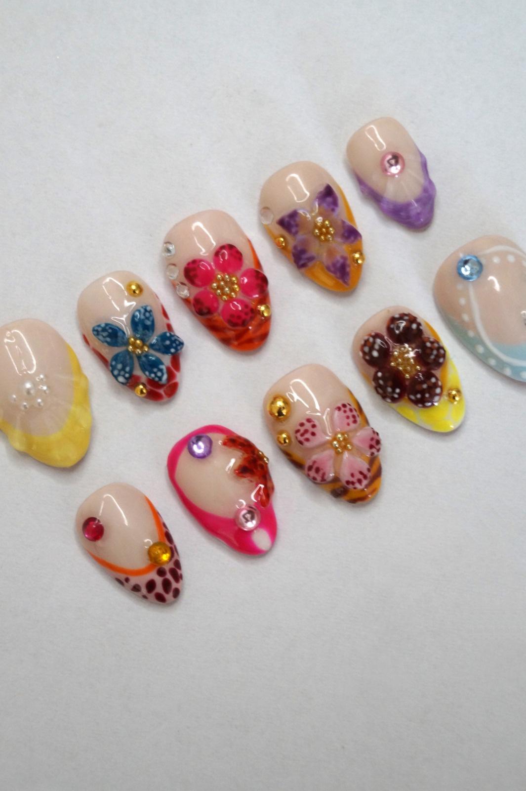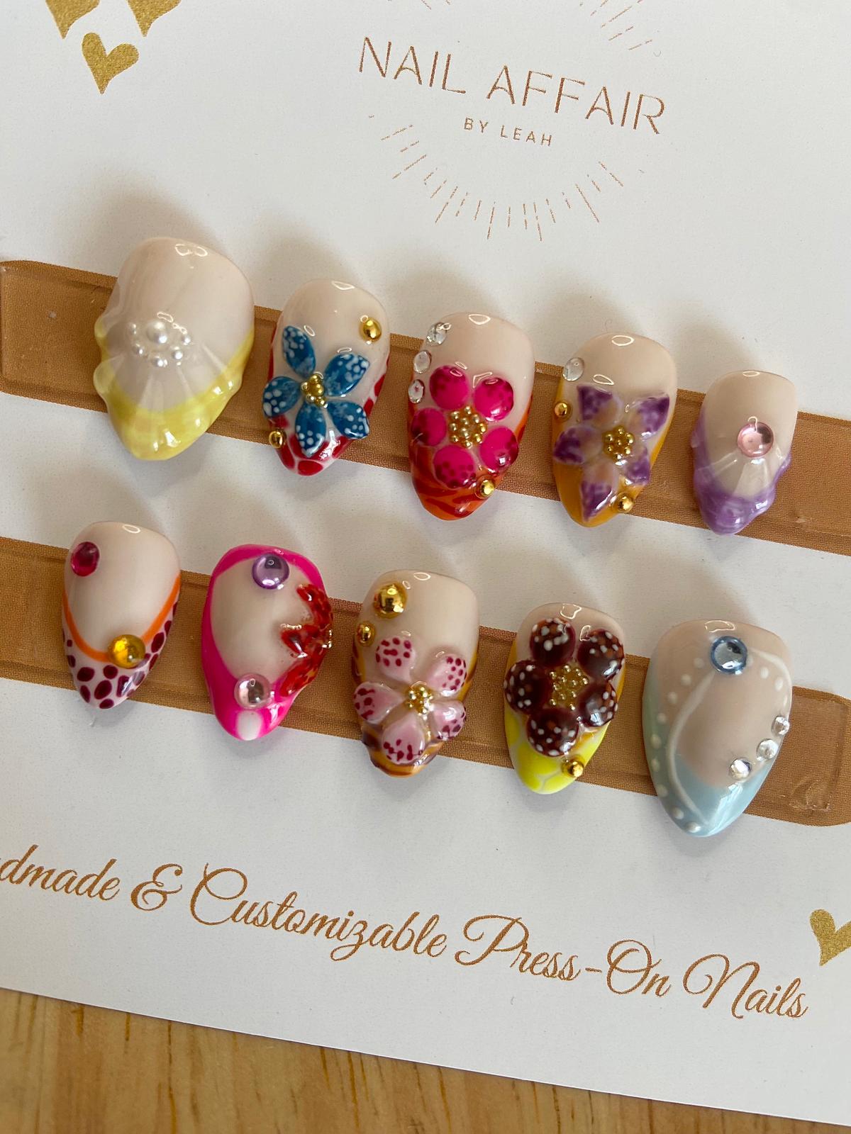 Enjoy hot summer days and romantic summer nights with Midsummer Floral Press-On Nails by Nail_Affair_byLeah. These nails capture the electric feeling of summer with 3D flowers and vibrant colours. Easy to apply and comfortable to wear, these nails ensure your fingertips are always ready for summery days and nights.
