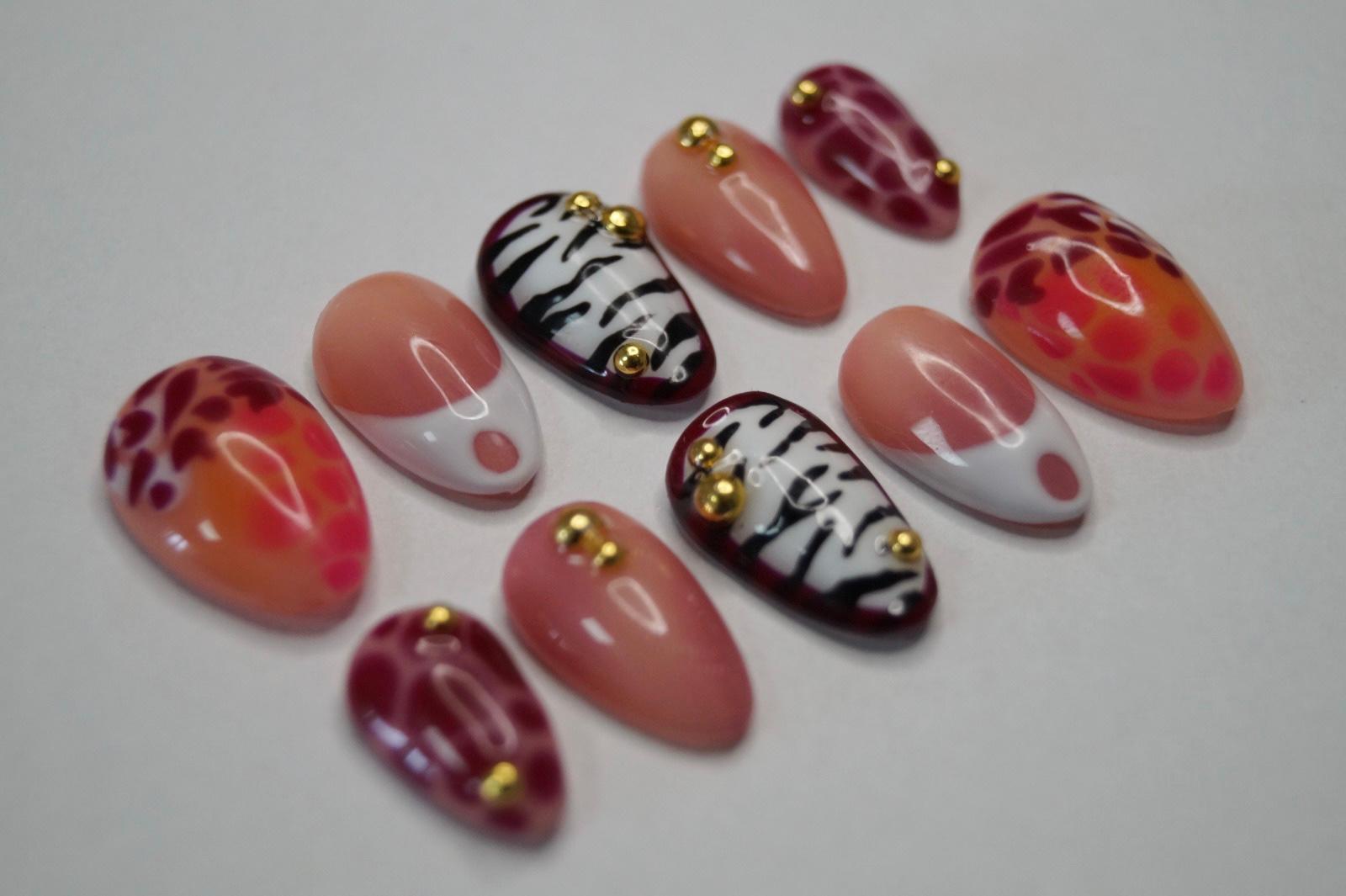 Your press on set comes with 10 reusable press on nails and an application kit containing everything you need for a seamless application!