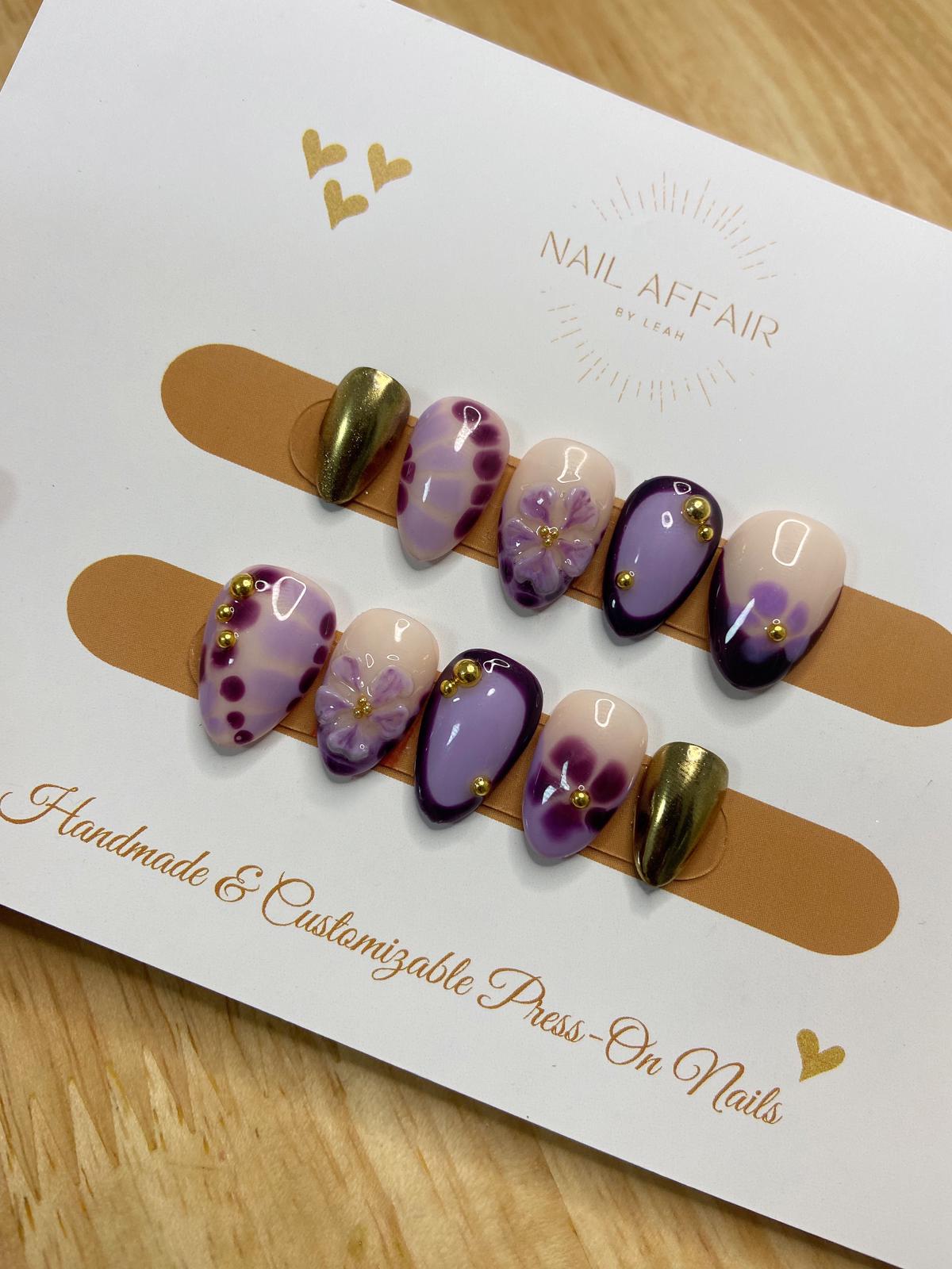 Your press on set comes with 10 reusable press on nails and an application kit containing everything you need for a seamless application!